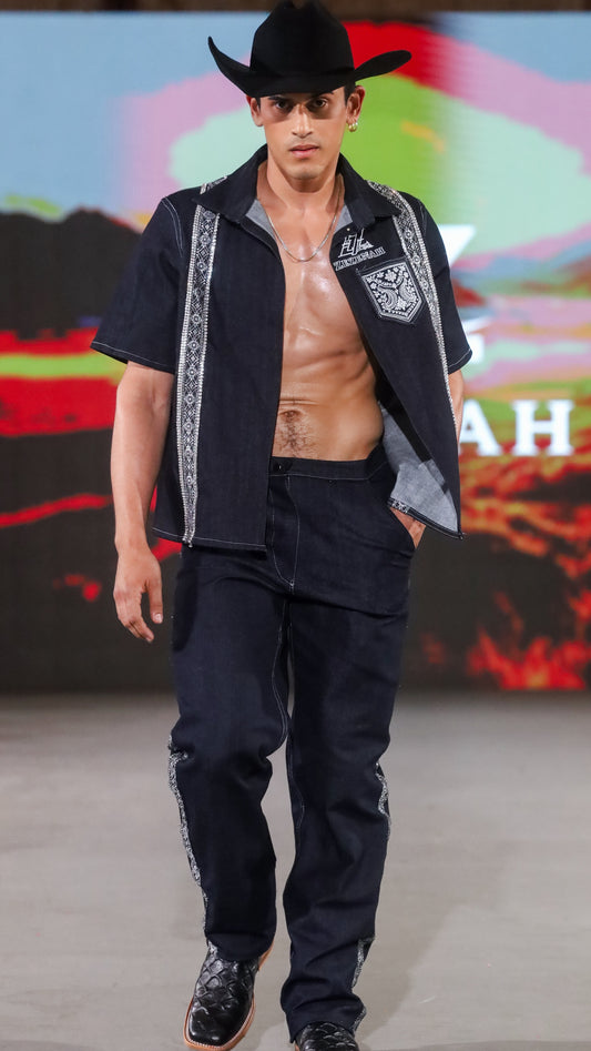 La Revolución is a collection rooted in identity, heritage, and self-expression. It is an introduction to where I come from — Texas — and a reflection of the Hispanic culture that inspires my vision. Each piece is designed with meaning, blending personal story, strength, and intention. Built through denim, structure, and bold detail, La Revolución reflects a modern cowboy look — strong, rebellious, and elevated. The bandana elements symbolize culture, resilience, and history, the Aztec-inspired details represent heritage and tradition, and denim represents strength.Through structured silhouettes and bold denim, La Revolución honors where I come from while creating something new — a balance of heritage, ambition, and confidence.